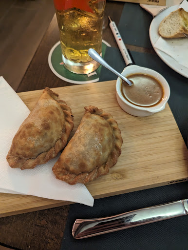 Die hochgelobte Sangria war eine Enttäuschung (geschmacklich wie inhaltlich - bestand hauptsächlich aus Kristalleis, wenn bei 1L gerade mal 3x 0,2 Gläser rauskommen 🤦♂️ 3 harte nichts sagende Brötchen, die man separat bestellen muss 🤦♂️