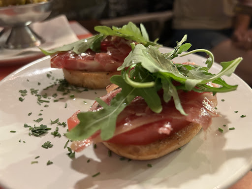This place is overrated, period! We went on a monday night around 21.00, had to wait 10 minutes before a waiter approached us and offered drinks. We ordered olives, bread, alioli, prawns, chicken kebab and bacon dates. Had to wait 40 mintes for bread and olives then 10-15 minutes for every dish thereafter. The dishes were a bit tasteless when they finally arrived. The bacon dates seemed to have been deep fried, which meant the bacon wasn't crispy. The chicken and the prawns we had to dip in the aioli to give the impression of taste. Overall the food was at best average, and the service was poor. Overall 2 out of 5. It didn't help that the manager presented every dish...