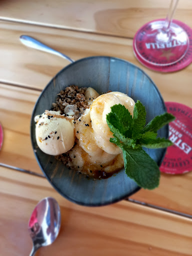 Today was our last visit as we were treated extremely rude. When we took place at a table outside, we were informed that the waitress forgot to put a reservation sign on it. With no grumbling we moved inside. Here we were ignored for quite a while. When some guests left their outside-table to catch the waitress inside behind the bar, she offered them strawberry smoothies for dessert. All excited we went (in Spanish): "Great, that's exactly what we'd like to order, too." She pretended not to hear us in an otherwise empty room.