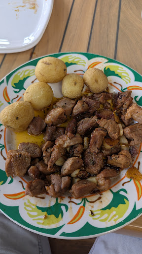 Read moreParamos aquí para comer rápidamente antes de ir al aeropuerto. Era la 13h y al llegar el señor nos dijo que hasta la 13:30 no llegaba la cocinera, le explicamos que teníamos algo de prisa porque teníamos que coger el vuelo.. el hombre muy majo nos dijo que en cuanto llegáse la cocinera nos haría la comida enseguida así que nos quedamos. Cuando ésta llegó pedimos queso frito para compartir y dos platos principales: cochino en adobo y solomillo de novillo. El queso no estaba mal aunque muy aceitoso, el cochino con bastante aceite también y más sabor a especies que a otra cosa, pero lo peor fue el solomillo. Solo sabía a aceite de girasol requemado, muy salado.. Una pena la verdad porque cuando pides un corte así de carne por 20€ almenos esperas que se pueda comer pero en este sitio parece que solo...