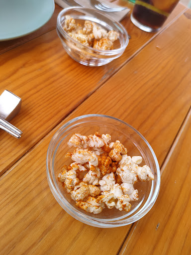 Como aperitivo, en lugar de las típicas aceitunas, pusieron unas palomitas con pimentón muy originales.