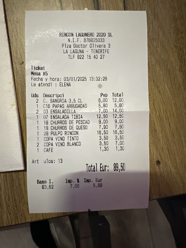 Read moreHaving been rebuffed at a nearby restaurant that was recommended by our tour guide (wrong opening hours, then opened later after asking, then queue jumped by Spaniards for the warm inside seating), we weren't in the best of moods. Immediately came across Rincon Lagunero and the waiter outside offered us a table that just became available. Before we knew it our orders were taken and food was swiftly delivered to the table. Tremendous wine. Gorgeous local fare. Friendly service. And great prices for a touristic area to match....