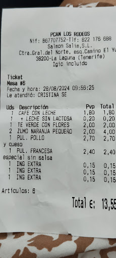 Hoy hemos ido mis hermanos y yo como muchos domingos... Y siempre hemos dejado pasar "detallitos", pero hoy es diferente ya que a pesar de informar sobre una alergia, no han tenido ninguna precaución. Éramos 3, y pedimos dos barraquitos, uno especial y vaso con hielo, café con leche de soja y una botella de agua. De comer, un croissant, bocadillo y Sandwich de pollo. Soy consciente de lo que puedo comer y de lo que no, y pregunto si el sadwich lleva mantequilla, me responde que si, y le digo que porfavor sin mantequilla y sin queso, ya que soy alérgica. La botella de agua llegó junto a un zumo de piña, le comentamos que no habíamos pedido, acto seguido la comida, la cual siempre reviso, debido a que no quiero terminar en el hospital por un despiste ( somos humanos, es normal) Llevaba mantequilla, se lo comento al camarero y me dice que porqué creo que lleva mantequilla.... Me dedico a la hostelería desde hace mucho y hay cosas que no voy a defender, y una de ellas es que poco más y nos dicen que les estamos molestando. Lo devuelve a la cocina, y me traen lo mismo, pero con el pan cambiado. Mi café aún sin llegar, y cuando mi hermano se mosquea y lo pide, de chiste era ya el tema, que se vuelve a levantar porque me traen el café por la mitad de la taza (café con leche) Cuando ya llega la hora de pagar, nos dimos cuenta que habían cobrado el zumo de piña. Y nos miraban con cara de ojalá no vuelvan más. No suelo hacer estas cosas porque un día malo lo tiene cualquiera y como he dicho, llevo en la hostelería 15 años. Pero hoy se ha jugado con mi salud, y tenido que recurrir finalmente a las pastillas de la alergia, y meterme en la cama al llegar. Esto no solo lo hago por mi, lo hago por esas personas que se creen que pedimos cosas "especiales" por un juego, una dieta o una moda. Esto es salud señores, yo hoy he terminado en la cama ya que mi alergia no es de grado alto. Pero si llega a ser grave, estaría en el hospital. Espero que tomen mayores medidas de precaución y no se tomen a juego la salud de sus cliente. Yo desde luego no vuelvo a comer ahí. Domingo 22 de...