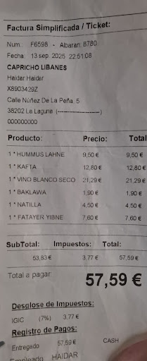 Read moreEstábamos por La Laguna y nos encontramos con este Libanés así que decidimos entrar y probarlo viendo que había opciones veganas.