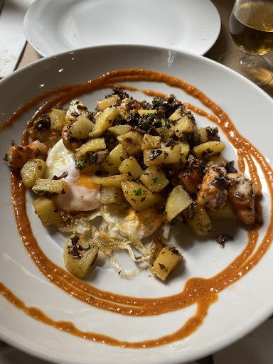 Read moreLa ubicación del local es perfecta, el mobiliario un tanto justo para albergar por ejemplo a cuatro comensales, la ausencia de acondicionamiento en momentos de calor como el de ese día, la bodega es bastante aceptable aunque muy mejorable y en cuanto a la propuesta gastronómica existen bastantes contrapuntos, pues algunas preparaciones están bastante logradas, otras dejan mucho que desear. Fue el caso de una ensalada que recibimos con aguacate un tanto negro por lados, mango algo verde, mini gambas en ¿”salmuera”? porque no eran gambas de calidad, pero si abundantes, cuatro mitades de cherrys, un aliño casi inexistente, en definitiva una preparación algo limitada y carente de algo más de fantasía para su precio. Quizá algunas de las preparaciones de carne les sobre algo de salsa que camufla un tanto el producto. Una combinación un tanto extraña fue la de la croqueta de ibérico con piquillos... no nos gustó mucho, pero entendemos que es muy subjetivo el gusto de cada cual. En definitiva, una declaración de intenciones que se queda ahí ...Pensaremos muy mucho en repetir. Eso si, agradecer el trato correcto del personal pero a ver si entre todos y en muchos locales se extingue el dirigirse a los clientes con el: ¿qué quieren chicos? Sin más, les deseamos lo mejor...