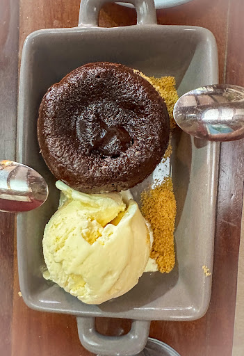 Uno de mis sitios favoritos... hasta hoy... La comida: La ensalada de berros.. solo berros... no hubo equilibrio entre el verdeo y el resto de ingredientes con lo que, dejas la mitad de la ensalada porque solo te comes lo de arriba y tampoco es un gran plato. Huevos a la estampida, correcto. El solomillo con mal sabor, mal cocinado y mal aliñado (sin salpimentar) en un plato sin gracia y mezclado con papas casi crudas, el conejo bien frito y fresco, el sabor una delicia pero pasado de pimienta... El postre (coulant con helado de vainilla) EXQUISITO!! lo mejor de la comida.