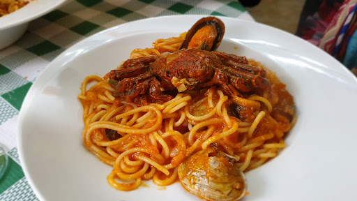 Reservamos, 2 personas, para cenar a las 21. Llegamos a esa hora, nos sentamos, nos tomaron nota de la bebida y unos minutos después, nos preguntaron que deseábamos comer. Pedimos un entrante sencillo (champiñones) y 2 platos de pasta como principales. La mesa que teníamos colindante parecía disgustada y les escuché decir que llevaban más de 30 minutos y no les habían traído los platos. Pero continué conversando con mi pareja.