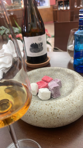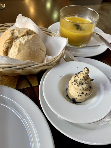 Read moreLo que más me gustó fue el vino de postre que ponen como invitación al final. (De la cual pedí Info ; un vino artesanal que lo hace una señora de la Gomera, y que espero encontrar pronto para saber si puedo comprar un par de botellas.la variedad de vinos particulares y que se ven en pocos sitios, tanto locales como de fuera es interesante. Solo por eso casi merece la pena la visita. Para probar algún vino y llevarte otro a casa. De resto, estaba todo correcto, pero en mi opinión podría estar mejorable o más equilibrado. Todo bueno; si, pero no notable. Los puerros confitados si fueran rellenos tal vez estuvieran mejor; habían 3 de tamaños distintos y el único sabor que predominaba era el de la trufa. El Tartar de atún en mojo rojo; demasiado sabor a mojo, el pulpo estaba bueno; aunque la mitad de él estaba muy duro. Las “nubes” de postre cortesía de la casa, caseras, deduzco, estaban ricas, se agradece lo artesano. Y detalles como el pan y mantequillas, el vino de postre ( el cual repetimos y cobraron ( y bien) y las nubes ya que no pedimos postre. Fue un miércoles y habían solo 3 mesas a las 14:30 ; el detalle de que salga un chef a preguntar qué tal la experiencia siempre es de agradecer; pero no fue el caso. No sé si en este rte. suele ocurrir. La atención, servicio: Pues si fuera más sonriente, cercana, y te explicara algo los platos al presentarlos pues sería más de agradecer; ) hubiera ayudado a la experiencia en gral. No comimos pescado ni carnes como principal, pero si es a la brasa” debería estar rico. Pd.; el pan masa madre con mucho sabor a brasa tamb estaba Rico ( normalmente no como pan pero decidi probarlo por lo q se veía y fue...