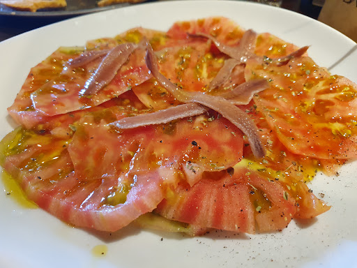 As you might imagine, cachopos are very filling, so we started with a light, excellent tomato and anchovy salad.