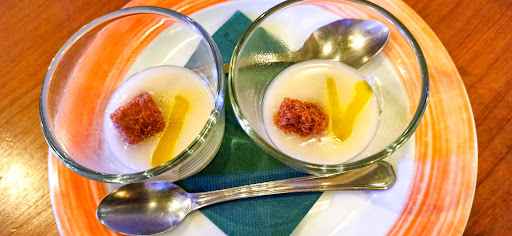 For dessert, we had a bruleed rice pudding, which was good too. They even provided chupitos, both with and without alcohol.