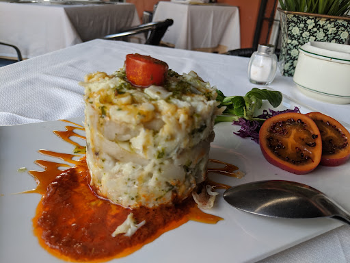This was a lovely restaurant. I was the only person eating on the patio. My waiter was attentive and appropriately friendly. He noticed I had luggage and offered to call a taxi for me if I need it. He turned on the little bubbling fountain just for me. I noticed him watching from inside the restaurant so he could be sure I had what I needed at the optimal time.l - great service without hovering. I ordered three appetizers. The sweet potatoes with cod was so delicious. There was a red sauce that I kept coming back to have just one more bite. The prawns in garlic came with the butter sizzling, the garlic perfectly roasted and tender, the prawns perfectly cooked, although not cleaned. The waiter explained the first dish was Canarian, while the prawns were Spanish. I enjoyed those little tidbits of info. He noticed I was so full and, without my even asking, offered to take my third appetizer off the bill and assured me it was okay. I stayed for coffee, used the very clean restroom, and said goodbye. Will happily return here...