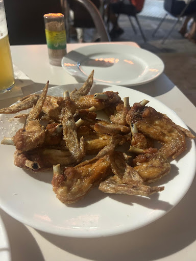 Read moreSitio especializado en alitas, pero poco más, también tienen cuello y mollejas (pero como no me gustan no puedo opinar sobre ello). A mi gusto las raciones de alitas (aunque vienen 10/12 no recuerdo bien el número), son escasas en carne, muy huesudas y poco o nada de chicha. Las alitas en sí estaban bien fritas, bien de sal y bien de limón por lo que se comían bien. Fuimos 4 adultos con 3 niños y después de 4 raciones de alitas nos fuimos porque veiamos que necesitábamos 1/1,5 raciones por cabeza para que comiéramos algo. La cuenta al final sale de media unos 40 euros largos (nosotros con bebida y pan creo que fueron unos 52€)...todas las mesas que estaban alrededor no bajaban de los 42/45 euros. Conclusión: si tienes antojo de alitas puedes ir, pero sabiendo que tienes que pedir al menos 1 ración...