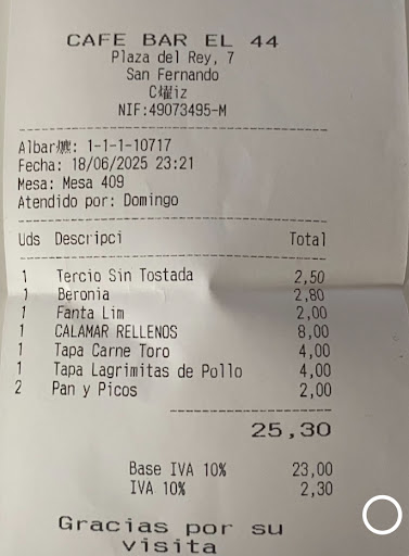 Read morehe tenido una muy mala experiencia en este bar! voy allí de toda la vida y siempre había ido todo bien, los camareros muy simpáticos y el servicio bueno pero han cometido un fallo que borra todo lo demás y no se puede permitir, y no supieron estar a la altura, por lo que para mí ya no tienen un servicio tan bueno como yo pensaba hasta el momento. fui hace una semana ha comer allí, nos sirvieron paella a mi pareja y a mí, muy amables como siempre.. y para nuestra sorpresa, el arroz no venía solo! en el plato de mi marido había una cucaracha😩 me puse muy nerviosa y avisamos a él camarero que nos estaba atendiendo. él apurado se llevó los platos e informó de lo que había pasado, pero en ningún momento salió el principal del bar a disculparse ni nada de eso, y lo que ya es increíble, es que siguieron sacando platos de paella!!!😳😳😳 creo que es algo que no se puede permitir, con esa normalidad con la que se lo tomaron, creo que no debe ser la primera vez que pasa algo así allí. no tuvieron en cuenta nada, ni qu somos clientes habituales, ni la asquerosidad que es eso. La verdad que desde este día para mí ha habido un antes y un después. no os recomiendo este bar para nada y muchísimo menos para comer. y era mi bar de confianza y de paso pero ha sido demasiado vergonzoso este percance y la poca vergüenza de seguir sirviendo paella en nuestra cara. No quisimos poner denuncia por guardarle la cara al camarero, pero no veo que actuaran bien así que esto es lo que me pasó. no id a...