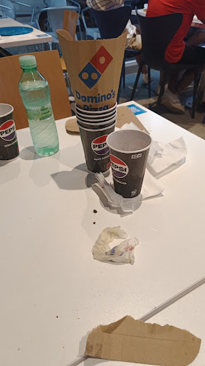 Hemos pedido un "buffet" y por lo visto...(solo nos hemos pedido 2 pizzas, uno para cada uno., de las cuales ha sobrado un cuarto de cada una) con eso podíamos pedir todas las pizzas y rellenar bebidas todas las veces que quisiéramos, no siendo objetivamente informados de ello. Por pedir ese servicio, no se pueden dar cajas para los trozos sobrantes (no siendo debidamente informados antes de consumirlas por el trabajador y donde si viene debidamente señalizado esta expuesto en una zona poco visible de la barra en un cartel del tamaño de una cuartilla, con letras pequeñas). Los trabajadores han sido muy desagradables al pedirle una caja para llevar los trozos de pizza que nos habían sobrado. Refiriéndose a que no podían darnos la caja por haber pedido el "buffet", amablemente le he pedido pagar por la caja si no podían dármela, a lo que me han contestado que no, que la media pizza que había sobrado se tiraban a la basura y que no se la podían dar ni a un mendigo ( denigrando a personas que están en la calle, con ese comentario) porque a saber que habíamos hecho con esos trozos de pizza.... Todo esto de muy malas maneras y con una forma de hablar bastante altiva... En fin, a este Domino's al...