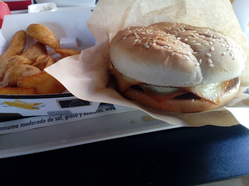 He ido a comprar un menú infantil pra mi niño y le pregunto a la muchacha primero que hay de juguete y me dice que son juegos, claro mi niño tiene 4 años y no son para su edad generalmente y me dice bueno hay libros, y digo pues mira le pido eso... lo primero que no me gusta es que no te atienden personalmente osea que cualquier persona mayor por ejemplo se va sin comprar seguro... lo siguiente es que cuando pido y me dan el pedido resulta que mo viene el libro, se lo digo y me dice que no hay libros😶 perdona? No se porqué no me lo dijo antes cuando se lo comenté y digo bueno mira da igual, cuando llego a casa y abro la hamburguesa resulta que se han equivocado y no me la pusieron sola con queso😮💨, mis patatas las pedí con sazonador sour cream y cuando abro me las ham puesto con el de queso😠 y para colmo no me dan cañita para la bebida😡 vamos a ver un herror vale pero 4... y habían 4 personas comiendo, vamos que no había jaleo ni nada. No vuelvo mas vamos. Hace 2 años que hice la reseña y hoy vuelvo a escribir para decir que nada a mejorado, van a peor... te hacen el pedido y te hacen esperar mas adelante con el coche y se van acumulando los coches esperando los pedidos, les dan los pedidos a los últimos antes que a los primeros que llegaron, pido el helado con extra de kitkat y en tres ocasiones el extra no está, tiene 3 mijitas de kitkat, vamos una porquería todo. Desde luego que se acabó este sitio para nosotros han agotado...
