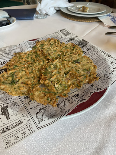 Teníamos muchas ganas de ir, aprovechamos que era lunes de semana santa para ir con los niños. Al principio nos sorprendió la carta, platos caros y sin posibilidad de medias raciones. Cuando vas con tres niños pequeños es complicado pedir así. Nos dijeron que de algunas cosas nos podían poner medias. Pudimos pedir media de ortiguillas fritas, 8 euros…(lastima que se me paso hacer fotos porque venían 7/8 unidades, que se perdían en el plato), para los niños nos pusieron un plato de pajarrete con mostaza o algo así, que era como cazón frito, un plato de 10 euros muy escaso. A continuación media ración de tortillitas de camarones que fue lo más rico. Pedimos un arroz marinero, muy escaso en comparación con otros sitios. Lo de marinero era por las dos almejas, los dos mejillones y una gamba. Muy atomatado y con un sabor a pimiento rojo exagerado. De sabor a mar, nada. Hemos comido arroces infinitamente más sabrosos o al menos con pescado, cazón, choco, calamar… en este nada. El servicio era correcto, pero tuve que estar detrás de las camareras para que nos atendieran. Era imposible que te atendieran y eso que no había mucha gente. Tuve que avisar para que nos tomaran nota de la bebida, el pan lo pedí en dos ocasiones y lo trajeron ya con el arroz. Nos trajeron 3/4 rodajas de pan y 2 paquetes de picos, q no abrimos… ya estábamos con el segundo plato, el pan es un poco para acompañar la comida, no para tomarlo de postre. Eran correctas, pero no estaban muy pendientes. Otro detalle que no me gusto, fue en el baño, no te dejan tirar papeles al wc por lo que hay un contenedor grande para tirar los papeles. Cuando llegamos solo estaba mi mesa y otra más, por lo que los papeles que estaban allí dentro debían ser de otros días. Olía horrible, no se podía entrar, no me parece higiénico esa forma acumular papel usado de hace días… Otro detalle horrible fue el pan. Al pedir la cuenta, nos cobraron más de 7 euros por el, para 2 adultos y 3 niños pequeños. A mi no me importa que me cobren el pan por persona, pero si esto es real. No vale la misma cantidad, 3 trozos y 2 paquetes de picos para mi mesa, y para la mesa de al lado que eran dos. Q a mi me cobren mas de 7 euros y a la de al lado cueste menos de 3 euros…no recomiendo ir a comer allí. Salimos con hambre y con...