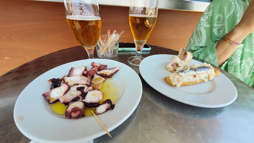 One of several kiosks situated along the seafront. They all serve a range of food and drink ranging from simple tapas, churros and light meals. Drinks are generally tea and coffee, soft drinks, beer, wines and spirits. Opening times vary with the time of the season. In high season they will be open for breakfast until late evening. In low season opening times will be shorter with some only opening at weekends. This particular kiosk, being closer to the town, tends to remain open longer. It offers a wider range of food than some others with several fish dishes...