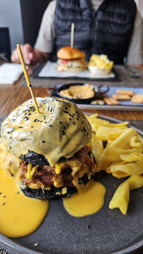 Read moreFuimos mi pareja (cocinero) y yo (camarera) a cenar ya que nos habían hablado bien del sitio. Nada más llegar un miercoles con reserva a las 21:30 nos dicen que justamente se les acaba de agotar la yuca, bueno, mala suerte. Decidimos entonces pedir la batata con salsa de queso gorgonzola y pera. El sabor de la salsa era casi inexistente y mucho más acompañado de la batata frita. Después pedimos la ensalada de tomate rosa y burrata, muy buena, pero ponía que venía con salsa de pesto verde y la trajeron con trufa y cebollino. Suerte que nos gustó. Para terminar hamburguesa "La Nuestra" y "La negra tiene tumbao". No estaban mal.