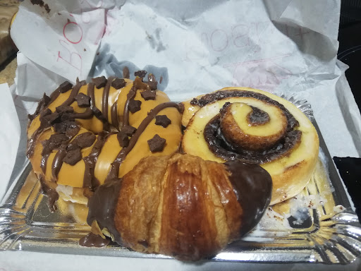 Visita a este local situado cercano al centro de San Javier, que se trata de una cafetería, pastelería y bollería, ya que cuenta con diferentes productos en sus vitrinas como eran tartas y pasteles que se podían pedir en porciones, y bollería aunque no tenían mucha tenía toda muy buena pinta. En mi caso pedí un rollo de canela que me encantan y me alegra que lo hagan ya que es difícil encontrarlo en la zona que no estaba mal pero llevaba la canela demasiado concentrada en una parte y me hubiese gustado algo más repartida, además de una masa más esponjosa pero no quedó mal de sabor finalmente, un donut bastante grande con cobertura naranja que estaba muy bueno con la masa nada aceitosa pero si jugosa y buena de sabor, y un croissant pequeño con cobertura de chocolate en las puntas que estaba también bastante bueno sobretodo las puntitas con la cobertura, además de que aunque no tuviese mucho sabor a mantequilla, no estaba nada...