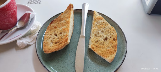 Read moreAcabamos de salir del lugar después de esperar 1h45min a que nos tomen nota y sirvan el desayuno. Spoiler: no hemos desayunado. De 3 tostadas y media han llegado 1 y media, qué ahora vereis la foto.... Y después de decirle al camarero que nos vamos si no salen las tostadas nos dice que es lo que hay, asique hemos pagado 11 eurazos por dos zumos un café y una y...