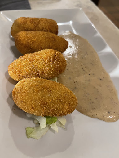2 people: We shared 3 tapas and one dessert. croquetas con trufa batatas revolconas canelón de rabo de toro arroz...