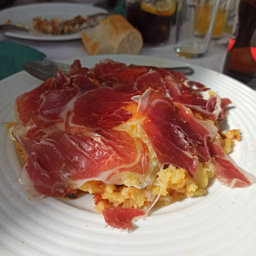 Los huevos rotos con jamón, con sus correspondientes patatas y chorizo, bastante ricas y abundantes, sobre todo de huevo y jamón.
