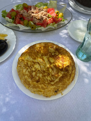 Subimos a dar una vielta y al estar abierto tomar algo; el personal muy amable. Nos sacó la carta, y yo pensando que tenían pinchos de tortilla me lleve una sorpresa, no tienen pero te preparan una tortilla pequeña o grande, en el momento. La mía, por lo menos tenía cebolla, como debe ser, y cuajada, pero jugosa, que hay sitios que no se come tortilla, se bebe. La tortilla pequeña será de unos 20 cm., y salvo que seas Obelix, llena. El precio de ésta es de 8€, puede parecer caro, pero teniendo en cuenta que la hacen al momento, el sitio y que no es una zona de hostelería con otros locales, el precio es ajustado.