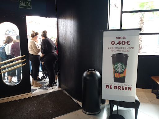 Read moreBueno un Starbucks. Yo no soy muy fan de sus cafés aunque si de sus bollos variados que siempre han estado exquisitos. En esta ocasión pedímos un café expreso que por lo visto estaba muy bueno pero mi café americano se pasó de largo de agua y de temperatura, ( y soy muy cafetera) , no pude sacarle sabor y para mí hijo pedí un chocolate y nada que ver con el que recuerdo de hace tiempo, más bien un Colacao ligero y ardiente!!!. El precio pues imaginaros , Starbucks y Parque Warner, combinación perfecta que hubiera pagado con agrado ( ya que se lo que hay) si el café y el chocolate hubieran sabido a algo más que a nada. En fin, hace tiempo que no iba pero...me costará volver y es una pena. El local está muy chulo y agradable, en mi caso el personal también muy agradable y desde luego los bizcochos, bocadillos etc tenían una pinta excepcional como siempre pero desencantada por lo demás. Una...