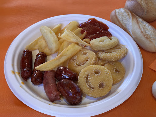 Había bastante variedad de comida: fritos (nuggets, calamares, patatas fritas, bolitas de pollo, berenjena rebozada…) También carnes (lomo, chorizitos, longanizas, pollo, costilla…) además de pasta (macarrones y espaguetis con salsa de tomate, boloñesa o carbonara).