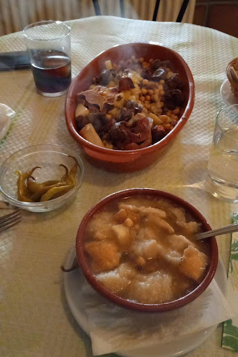 Read moreLo que más se come en este mesón es el cocido. Primero traen la sopa con pan en cazuela de barro y despues otra cazuela con los garbanzos. Estos van acompañados de tocino, huesos con algo de carne, un trocito de morcilla de sangre y otro de chorizo , lo más rico, por persona. Los garbanzos son pequeñitos y tiernos estàn muy ricos. Quizá un poco demasiado sabor a tocino que es lo más abundante. También ponen un poquito de berza aparte. El comedor es muy sencillo y tienen barra aparte. Los vinitos son de la zona hay una bodega en el pueblo que hace un crianza muy rico. Postres sencillos. Al que le guste el cocido o esté paseando por la zona es una buena opción.también se puede encargar un par de dias antes asado de cordero y de cabrito. Servicio muy amable. Se aparca bien...