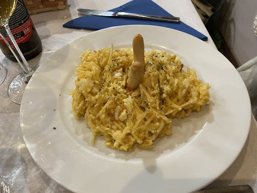 Read moreExcelente calidad del producto. Platos sencillos pero tratando magníficamente el género y en buenas cantidades. Pedimos menú del día (leído de viva voz), y la carne del 2º plato (solomillo de cerdo) era de calidad espectacular, en su punto perfecto. Acompañamientos de calidad (la patata frita, natural, bien frita, recién hecha y en aceite limpio). El pisto, casero realmente y trabajado despacio y con cariño. El pan, del que gusta comer, nada industrial, pan blanco de miga abundante y donde se notaba la fermentacion....(lo que en muchos sitios sería una pijada de lujo por la que pagas 5 euros, aquí es lo normal). El bacalao a la dorada magnífico. Acompañamiento del menú con un plato de lechuga y cebolla frescas y muy bien aliñados. Se nota la mano de una persona en la cocina a la que le gustan las cosas bien hechas. Controlando aforo y reservas con el claro objetivo de mantener la calidad. Precio bastante razonable para la magnífica calidad del producto. 16 euros el menú del día en agosto y en plenas fiestas del pueblo. Volveremos en nuestra próxima visita a San...