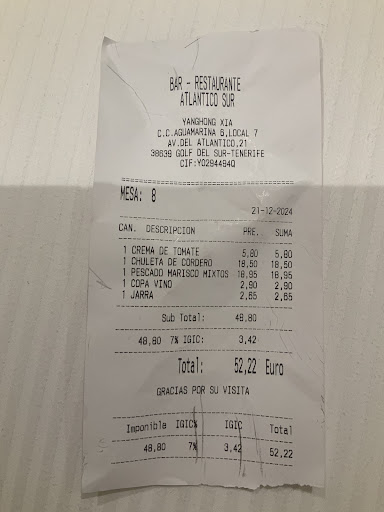 We tried this place because it seemed to be fairly busy, so we assumed it was because it was THE place to be! Sadly we were wrong! The lady serving us was really friendly and helpful, but unfortunately got one of the orders wrong; my dad specifically said NO cheese in his omelette and it came full of cheese. The Paella was nice albeit too much salt added (we found this across many of the places we visited though, so that might be a Spanish thing). My mum requested a half bottle of champagne sangria and they served and tried to charge for a full one - my mum requested and only drank half (thinking the jug they presented was quite big!) so this had to be amended on the bill. We did mention the omelette and she said she would have another made but by then my dad was put off, so she took that off the bill too. We also requested extra drinks that were never served to is that they tried to charge us for “I took your order to the bar, didn’t she bring them out?” Nope - another bill amendment! Sadly it seemed they were only interested in getting more and more customers in, rather than providing an excellent service that would make you want to return - I suspect everyone was a one...