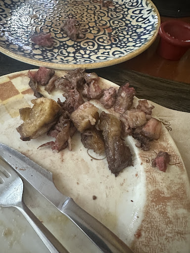 Read moreAl llegar al lugar, hemos tenido muchas complicaciones en encontrar aparcamiento, pero una vez dentro, pensando que la cosa iba a mejorar, nos llevamos la gran sorpresa y nos reciben diciéndonos o avisándonos de que si decidíamos sentarnos, íbamos a tener que esperar bastante, porque le habían llegado unas cuantas mesas de golpe, casi echándonos de lugar Pero aún así, debido a la reseñas positivas de lugar, nos sentamos. La verdad no hemos esperado mucho y una camarera nos atiende bastante bien y amable nos pedimos unas croquetas de pollo y rabo de toro Que a pesar de que estaban súper súper quemadas casi cancerígenas el relleno de las de rabo de toro estaba muy bueno, luego nos pedimos una especie de revuelto de pulpo con verduras y papaya, que la verdad estaba bastante bien, pero carecía de pulpo… por recomendación de la camarera, pedimos el entrecote (Plato del día) Que según lo que nos Recomendó iba a estar súper bueno… Y sin embargo, fue lo más decepcionante de toda la comida. La carne era incomible súper dura y llena de grasa y nervios. El quesillo estaba bastante bien. En resumen, no lo recomiendo, no volvería y es demasiado caro para el lugar que es y la...