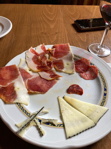 Sorprendente, pero siento decir que aunque está situado dentro de un conjunto histórico maravilloso, el trato por parte de el personal no puede ser más desagradable, como la cara de incomodidad que ha puesto su camarera al pedirle 2 vinos y una ración combinada de queso y embutidos. 2 vinos mediocres en copa de chato. El queso 5 cuñas pequeñas mal cortadas y de mala calidad (plasticoso), el chorizo (6 rodajas y media), dudo mucho que sea de la zona ( ristra de chorizo picante de la compramos en el híper para guisar), 6 rodajas de salchichón fino de pimienta tipo fuet sin curar. 6 rodajas de cabezada que estaba helada, supongo que para poderla cortar fina con máquina, con lo cuál, no tenía sabor y lo mejor, el corte de otras 6 lonchitas de jamón, que al proceder de una punta de esas que utilizamos para caldo, sólo tenía tocino con un sabor un tanto rancio. Aun así, evidentemente al pagar la cuenta les dejo el plato con la mayoría del la ración y les muestro mi desagrado... conclusión: 15'40€.. No sé cómo serán los negocios aledaños, pero este desde luego no os lo puedo recomendar ni en trato, ni en calidad y por su puesto en precio. Una tomadura de pelo!! Espero que esta reseña, al igual que las cientos anteriores que voy dejando en Google, os ayuden cómo clientes cuando hacemos turismo con el ánimo de llevarnos buenos recuerdos tanto culturales como gastronómicos. Aun así nuestra visita Rioja ha sido espectacular, vinos excelentes como los de bodegas Bideona, Las parcelas, en sus dos variedades tempranillo tinto y viura blanco no dejarán indiferente a ningún al paladar, ruta de pinchos fantástica en Laguardia.. excelente entorno donde el románico tampoco os dejará indiferentes.aunque haya sitios que enturbien un poco esa...