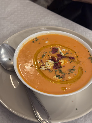 Read moreCuando pasaba en el coche rumbo al aparcamiento del monasterio, ví un callejoncito a la derecha y captó mi atención, me dije: "Buen sitio para un café antes de entrar al monasterio". Entré y nadie en la barra para atenderte, nadie en la terracilla, nadie, silencio absoluto, miré a mi izquierda y ví un piano con una especie de muñeco sentado delante y dije para mis adentros: "ya sé como hacer que salga alguien a atenderte", toqué un par de notas en el teclado y voilá!!!!!apareció de las catacumbas un individuo con cara de pocos amigos, era el camarero, en fín después de esa visión apocalíptica debí haber salido a la carrera, no obstante pedí un par de cafés y un bocadillo de queso, no estaban mal, al momento de pagar me pareció un poco caro, pero no le dí mayor importancia, eso sí, el trato dispensado por el "gran defensor de los pianos" hizo que abandonara la idea de comer allí. En fin, un sitio muy bonito, pero con una especie de espantapájaros que ahuyenta a...