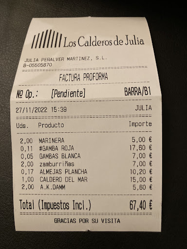 Excellent position opposite the boat club and beach. The service was good but inside space was a bit of a squeeze, we were a bit close to the people next to us. Outside space was better set up with plenty of room between tables. The food was okay and the fish for sharing didn’t have much meat on it, it was mostly bones and we thought (as per other comments) that it was not good value for money at 40 Euro. I see from JOSE LUIS MARTINEZ 1 star comment below that they were also caught out by the Gallo Pedro dish except they were smart enough to challenge the bill, as we didn’t see the price, so that restaurant owes us 20 Euro, I include Jose Luis bill below mine. My total bill was almost 72 Euro, that’s what happens when you take the waiter recommendation without checking the price. We won’t eat here again. I have added the two bills in the photos which shows we were ripped off be very careful when...