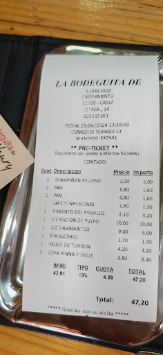 Read moreEspantosa decisión ir a cenar a este lugar. Nos sirvieron los primeros antes que los entrante y quisieron hacernos creer que una carne de calidad escasa y más que fina era solomillo. Cuando reclamamos el camarero se nos enfrentó y al no achicarnos ante sus amenazas de " si salgo de aquí..." Finalmente admite de mala gana que es lo que hay. Que vergüenza de gente. Ni volveré ni debería...