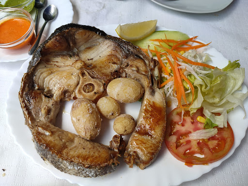 Read moreSe come bien. Después de 9 meses hemos vuelto esta vez un grupo de 13 moteros, pedidos nada más llegar ya querían las 2:30 y teníamos que coger el barco como muy tarde a las 4:30 pedidos 2 parrilladas (supuestamente para 6 personas) de carne y para picar 3 de queso asado más las bebidas que tardaron bastante en llegar la mía personalmente tuve que pedirla 3 veces, llegó el queso asado no estaba mal, más de 40 min. más tarde llegó 1 parrillada y 1 de papas que como mucho sería para 2 personas pasan más 10 min y no llega la otra para que los demás no estuvieran mirando repartimos esa bandeja entre todos y reclamos la otra a la cual nos dicen que se equivocaron de mesa y que la nuestra está por llegar, seguimos esperando al final tuvimos que decirles que nos teníamos que ir ya que las motos entran las primeras al barco y justo sacan la parrillada más de las 4 de la tarde, una de las compañeras que apenas alcanzo a coger un trocito chistorra, cogió de la parrillada un trozo de bistec, la señora vino y eso sí muy amable nos dijo que si no la queríamos llevar que la descontaba y así fue, pero nos cobran un bistec entero y por esa parrillada (que no tenía ni medio pollo, un bistec cortado en trozos, una chistorra, 2 trozos de costilla) 2 platos de papas fritas, 3 de queso asado y las bebidas refrescantes y cañas...