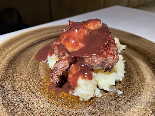 Después me pedí un rabo de toro con salsa de vino tinto y parmentier y este plato fue una mierda como la copa de un pino, la carne del rabo estaba dura, como casi una piedra, la salsa parecía que habían abierto la botella y la habían echado encima, sabia a vino puro y duro y yo no tomo vino porque no me gusta,en lugar de disfrazarlo un poco y que no se notara demasiado y luego la parmentier impregnada con el vino me supo fatal, en mi opinión este plato se puede mejorar quitando esta salsa de vino y poniendo otra clase de salsa,como por ejemplo algo mas dulce como un queso suave y luego la carne del rabo, hacer algo para que sea un poco mas blanda, como en otros restaurantes donde también he comido un rabo de toro deshuesado y que estaba mil veces mejor que el de aquí.