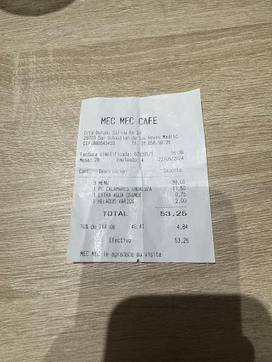 Read moreEstoy muy decepcionada con el servicio en MecMec Café. Cuando llegué con mi hija, había cinco personas delante de mí, que fueron atendidas normalmente. Pero cuando finalmente era mi turno, la camarera se fue de la caja para ir a limpiar las mesas durante 20 minutos, mientras me miraba. Estuve esperando con mi hija todo ese tiempo, completamente ignorada.
