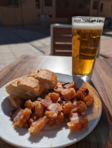 Read moreFuimos a visitar a unos amigos el fin de semana y solemos ir a este bar. Es un bar de barrio donde te sientes comodo y bien atendido desde el principio. Te ponen algo para picar con la cerveza y se agradece. La comida está buenisima y bien servida. Está todo muy limpio y hay muchos camarer@s trabajando alli por el volumen de trabajo ya que tienen muchos clientes habituales. Tiene un comedor pequeño en el interior, dentro en la barra mesas y sillas altas, y en el exterior tienen mesas. Delante del bar hay un parque para niños por lo que los padres pueden estar fuera tomándose algo y los niños entretenidos. Recomiendo probar las croquetas que estan buenisimas y la ensalada de queso de cabra. Por desgracia no he podido comerme toda la carta pero supongo que el resto también...