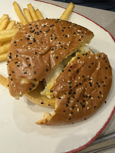 The food is of extremely poor quality. When you compare the picture of the burger on the menu with what they serve on your plate, you feel cheated. This restaurant is, in fact, a total scam. Look, this is supposed to be the Smash Bacon and Cheese burger. They couldn’t even be bothered to include a full slice of bacon, which might cost only 10 cents more. Instead, they cut it into a few thin strips. There’s no sauce or anything else, just a few pieces of dry, stale fries, all for the outrageous price of €14! You can definitely find much better burgers at local cafes for half the price. Don’t go There, as you’ll be scammed.