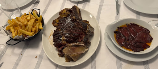 La txuleta es, sencillamente, espectacular. Un producto de primera calidad tratado con el respeto que merece. El punto de la carne, obra del chef Mikel Mayan, es digno de aplauso: jugosa por dentro, crujiente por fuera, con ese sabor ahumado y profundo que solo se consigue con experiencia y mimo. Se nota que detrás hay técnica, conocimiento y, sobre todo, amor por la parrilla.