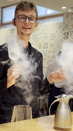 Second, the service at the chef's counter. While every single member of the team was polite and professional, the overall effect was overwhelming. Perhaps the intention is to create an immersive 'omakase' style experience, but in practice, it felt more like a chaotic beehive than an intimate ballet. This was especially noticeable when a dish was presented by a passionate chef, but the request for feedback came moments later from a different staff member who wasn't involved in its creation. This made the inquiry feel more like a procedural checklist than a genuine dialogue, and the connection to the kitchen was lost. As someone who truly enjoys attentive service, even I found the energy a bit too 'voldsomt,' as we might say in Norwegian.