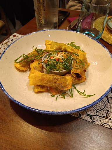 Ya que no teníamos ni idea de que pedir, le pedimos ayuda al camarero y nos sugirió que siendo 3 personas, eligiéramos 3 entrantes para picar y un plato principal a comer entre todos. El camarero nos ayudó mucho a elegir además de acertar completamente con lo que queríamos. Probamos para picar la yuquita rellena, bolas de yuca rellenas de queso rebozadas y fritas. Vienen acompañadas de una salsita picante y guacamole que les viene perfectamente. Muy ricas y jugosas, aunque no sorprende mucho ya que la yuca no tiene mucho sabor. Luego escogimos unos tequeños, que estaban increíbles. La carne del lomo muy jugosa y con su salsita, al morder el tequeño se expande en tu lengua. La crema de la casa con la que van acompañados solo mejora el tequeño, una mezcla increíble. Como último entrante probamos el ceviche Apu Mar, ya que teniendo el nombre de la casa no podíamos no escogerlo. Sabor increíble a lima con un acompañamiento de una salsa increíblemente picante si te atreves. El pescado del día junto al langostino, pulpo y los demás ingredientes de marisco están muy ricos y son de buena calidad. Las zamburiñas con el ceviche son una mezcla demasiado buena como para no probarla, los sabores se mezclan entre ellos y se aumentan. Por último probamos el chaufa mixto, para salir un poco del marisco y el pescado y probar un wok de carne y setas. Muy muy rico, se notaba la salsa de soja que habian utilizado en el wok al cocinarlo. La carne muy bien hecha y las setas en perfecta cocción. Un wok en todo su esplendor.