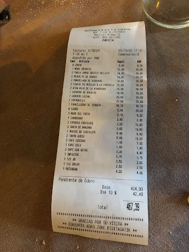 Read moreHoy he estado en el restaurante Araeta con mi mujer y mi bebe por el cumple de mi mujer. Nos ha sorprendido que al reservar nos preguntaran si queriamos una comida normalita o un menu sidreria, a lo que respondimos que una comida normal. Hoy al llegar, hemos descubierto que significaba que nos ubicarian en la zona del bar (donde no habia nadie mas). La verdad es que la comida nos la han servido rapido y estaba muy buena, pero se han olvidado de nosotros igual de rapido. Tras terminar de comer, hemos estado unos 30 minutos esperando a ver si nos retiraban los platos y nos daban la carta de postres. Veiamos salir a los camareros siempre directos a la terraza pero sin ni siquiera mirarnos. Al final he decidido ir a la barra a pedir una carta de postres y me la han propocionaro, a lo que yo he respondido señalando la ubicacion de muestra mesa. Pues tras 15 minutos aproximadamente, seguiamos ahi sentados, sin tener aun los platos recogidos y sin que viniera nadie a pedirnos el postre. Al llegar a este punto, mi mujer ya se ha cansado y me ha comentado para pedir la cuenta e irnos. Yo tenia pensado pedir que añadieran alguna bela al postre, pero no ha podido ser. He dejado la carta de postres donde he visto que la habia cogido el camarero y le he pedido la cuenta. Han tardado unos 10 minutos, que basicamente es lo que ha tardado en venir la camarera que nos habia atendido y a la cual pertenecia el servicio de nuestra mesa. Hemos visto que se ha dado cuenta de que se habia olvidado de nosotros por la cara que ha puesto al ver que nosotros pediamos la cuenta, pero ni siquiera se ha dignado a venir y decirnos nada. Ha venido otro camarero y nos ha cobrado. Nos hemos ido, y seguiamos con los platos sin recoger de la mesa, sin que nos ofrecieran si queriamos postre o cafe, habiendo comido 3 raciones y una botella de agua por valor de 53€… sinceramente no volvere, no llevare a la familia como tenia pensado, ni celebrare una comida de jubilación que habia pensado realizar a mi padre (25-30 personas acudirian). No hay que olvidarse que hasta una comida para 2 merece bien la pena servirla como dios manda. La de dinero que...