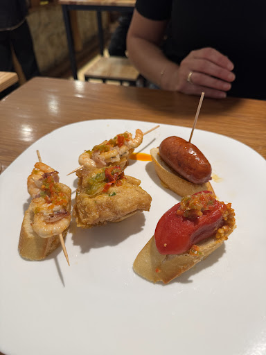 Read moreSo was haben wir noch nicht erlebt: da kommen wir in diese Bar und sind begeistert von den vielen verschiedenen sehr leckeren Pintxos. Dafür und die Bedienung ist eine 5 Sterne Bewertung sicherlich angemessen. Nur leider trübte dieses Vergnügen der überaus cholerische Chef(?) der den wirklich bemühten und sehr sympathischen Mitarbeiter vor allen Kollegen und den Gästen mehrmals runter machte und anschrie!!!! Der Grund war, dass ich dem MA einen 5 Euroschein gab und ihn bat mir 3 Euro wieder rauszugeben. Der MA musste den Schein vom Chef wechseln lassen, da nur er Zugang zur Kasse hat. Daraufhin wurde der MA ein 2. Mal von dem Chef abgekanzelt und lauthals angeschrien! Sowas kann man absolut nicht machen. Deshalb kann ich für diese Bar leider nur einen Stern vergeben. We've never experienced anything like it: we come to this bar and are delighted by the many different, very tasty pintxos. For this and the service, a 5-star rating is certainly appropriate. Unfortunately, this pleasure was spoiled by the extremely choleric boss(?) who repeatedly put down and shouted at the really hard-working and very friendly employee in front of all his colleagues and the guests!!!! The reason was that I gave the employee a 5 euro bill and asked him to give me 3 euros back. The employee had to have the bill changed by the boss, as only he has access to the till. The employee was then told off a second time by the boss and shouted at at the top of his voice! You absolutely cannot do something like that. That's why I can only give this...