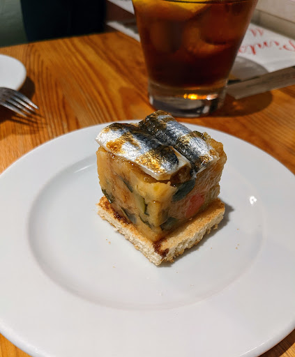 Read moreFood is good, dont get me wrong. I give this bar 1 star because of how they took advantage of me. I asked the server for a recommendation for a pintxo (singular). He asked me to trust him and said that he would bring me out their star pintxo. I thanked him and he brought out the fried shrimp, which I must admit was quite good. Then he brought me out 6 more pintxos that I did not order nor want. I was shocked and confused but it was not a big deal because I had some friends in the bar who I called over to help me eat the extra pintxos. I remembered that I had told the server that I was going to trust him. After I had finished, my girlfriend (a local) sat down next to me and said that she just wanted to order 2 pintxos. The server said OK and brought out 5! We were flabbergasted because it was obvious that the bar just wanted to take advantage of us. I used to frequent this bar... but after such poor service I cannot recommend this place. There are much better, more honest...