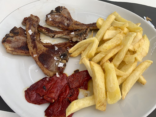 Hay sardinada, preguntamos si se pueden pedir y nos dice que en principio no porque son para los que han reservado pero que una ración nos sacan. Pedimos la carta para algo de cena también para el crío y preguntamos si se puede pedir todo y no saben tampoco, que de plancha no porque está para las sardinas. Pedimos unas rabas y unas patatas alioli pero con la salsa aparte (al crío no le gusta) y un poco de mayonesa para el crío. Pues ni la salsa aparte (encima de las patatas) y la camarera nos dice "les he dicho a cocina que aparte pero no me han hecho caso" (las teníamos que haber echado para atrás pero por la paz un ave maría).
