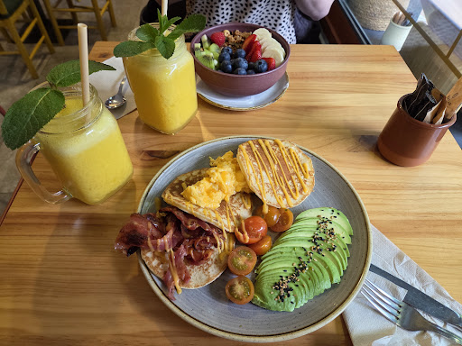The perfect place to go for lunch, breakfast, or to treat yourself with something sweet. I went at noon for lunch and ended up staying until late. The food was spectacular (the pictures don't do it justice), superabundant, and very tasty. The juices are totally fresh made at the moment, delicious! After lunch, we ordered their famous specialty coffee (probably the best I have tasted in the city) and something sweet. They have so many options! we went for the torta de queso with incredible creaminess and texture - nothing to envy the famous San Sebastian - and the pistachio alfajor, a true delicacy.